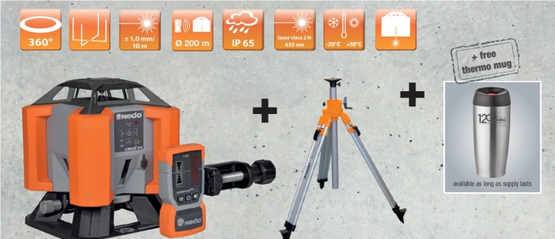 Univerzální křízový laser Nedo Linus 1 HV je robustní a velmi odolný stavební laser (IP 65), který je možné využívat v interiéru i v exteriéru.