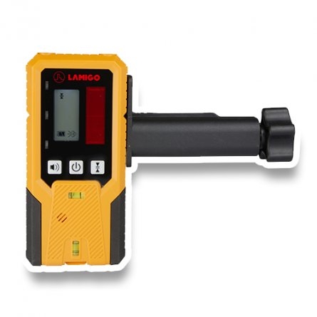 Lamigo RC 200 s držákem detektoru - usnadňuje práci s laserem. Může spolupracovat s rotačním laserem s červeným světlem většiny výrobců. Zařízení je vybaveno jedním podsvíceným LCD displejem, který zobrazuje odchylku od úrovně ve formě šipek, a má dlouhé pole laserového senzoru, dvě libelky a dva magnety.