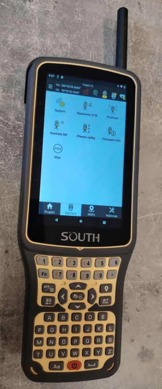 Robotická totální stanice SOUTH NS30 s vysokou úhlovou přesností 1" a dálkoměrem 1 mm + 1 ppm při měření na odrazný hranol. Software SurvStar v české lokalizaci pro měření od stroje NS30 v interní paměti i v záznamníku H6 pro robotické měření. Komunikace mezi strojem a záznamníkem probíhá přes bluetooth s dlouhým dosahem - ZigBee. Podpora formátu DXF pro import výkresu a následné vytyčení linií. V hybridním režimu je možné v jedné zakázce v záznamníku mít připojený zároveň GNSS GPS přijímač SOUTH (G1, INNO7, ALPS,..) a zároveň měřit roboticky s totální stanicí bez nutnosti přenášení dat mezi systémy.